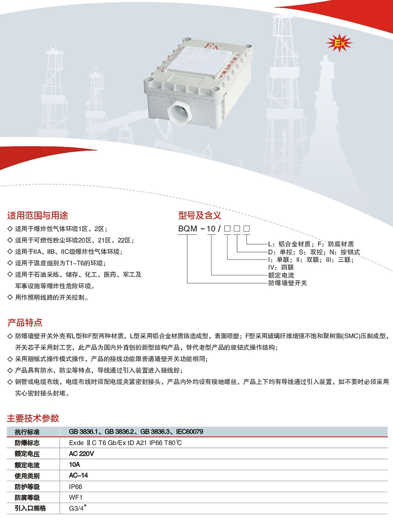BQM-10系列防爆墙壁开关(IIC、ExtD)
