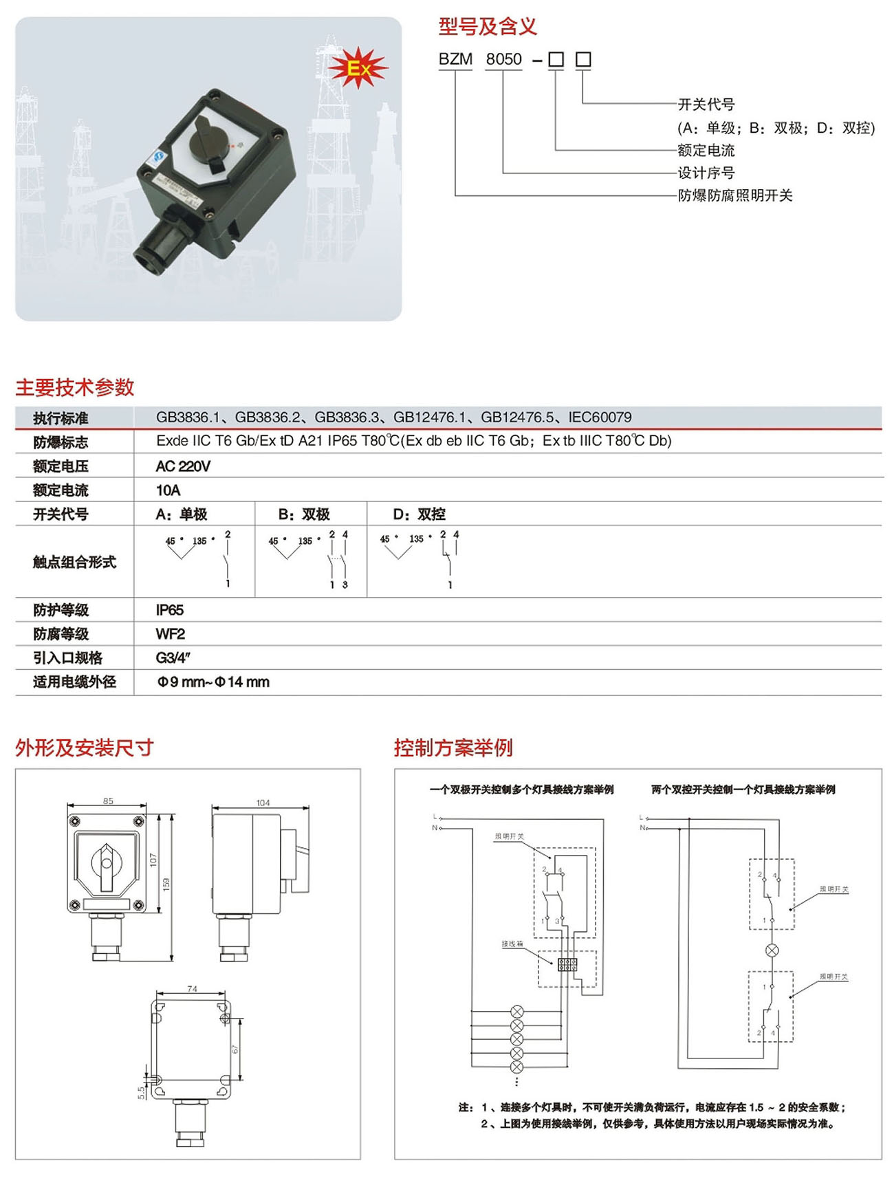 BZM8050系列防爆防腐照明开关(IIC、ExtD)