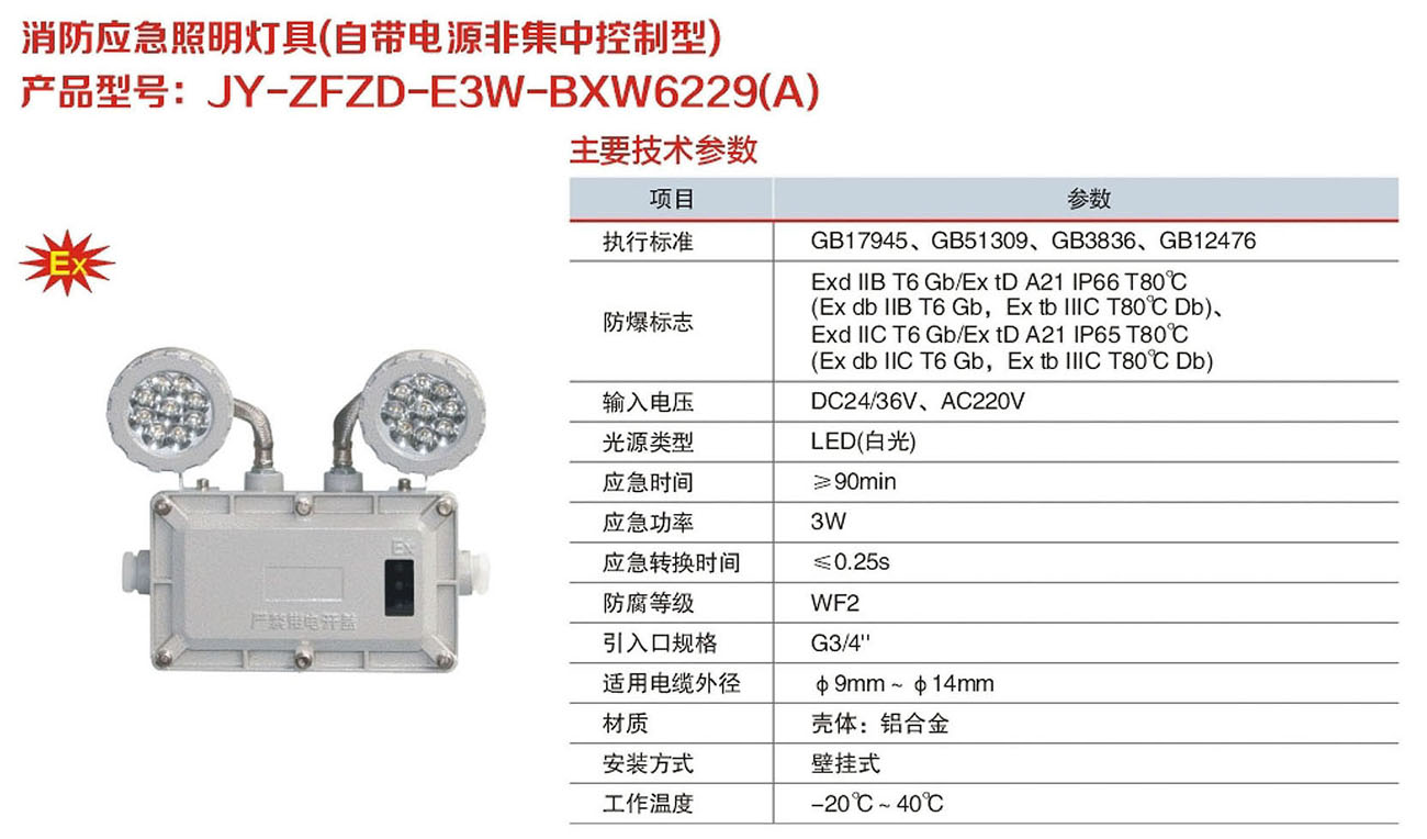 JY-ZFZD-E3W-BXW6229(A)自带电源非集中控制型消防应急照明灯具