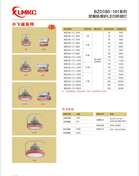 新黎明环保BZD180-101系列LED防爆灯不仅外观美丽精致,而且适用于任何防爆场所,可带应急!还有一种名字叫BLED-9111,BLED-9222,瓦数从20瓦可以做到250瓦,产品尺寸如下:
