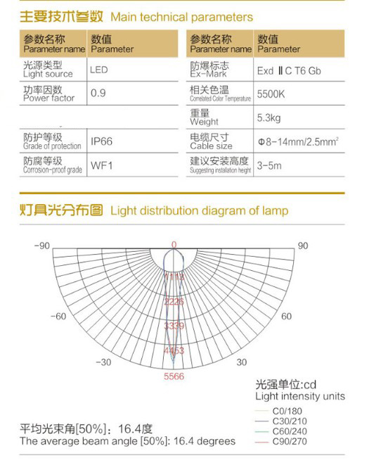 ■灯具防爆型式为复合型,适用于气体爆炸危险场所。